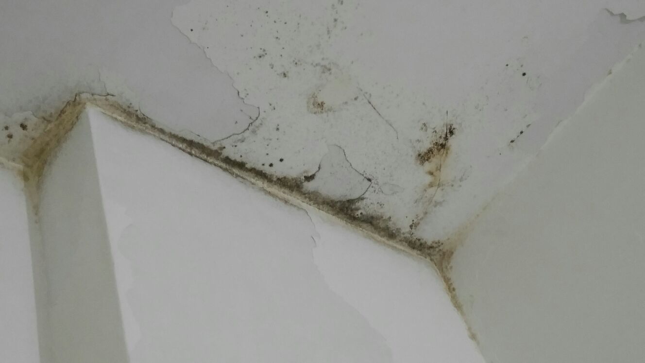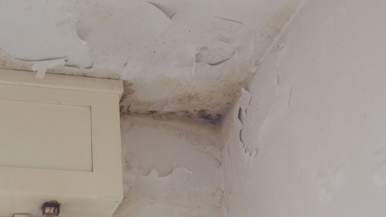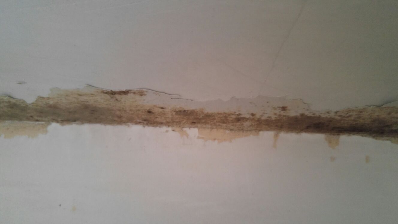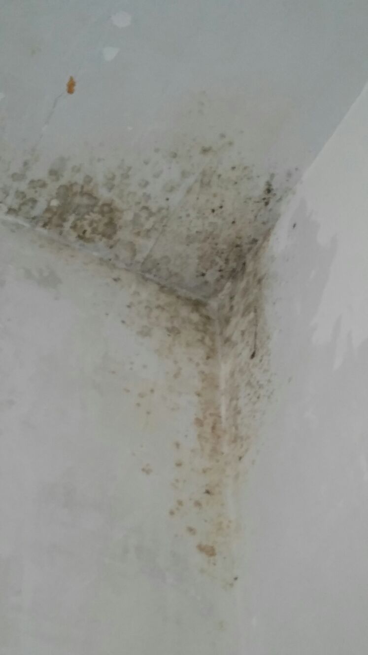 Muffa ovunque, persino sotto la vernice che si è staccata come fosse lo strato di una torta millefoglie!